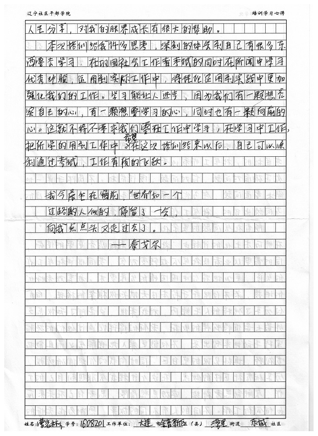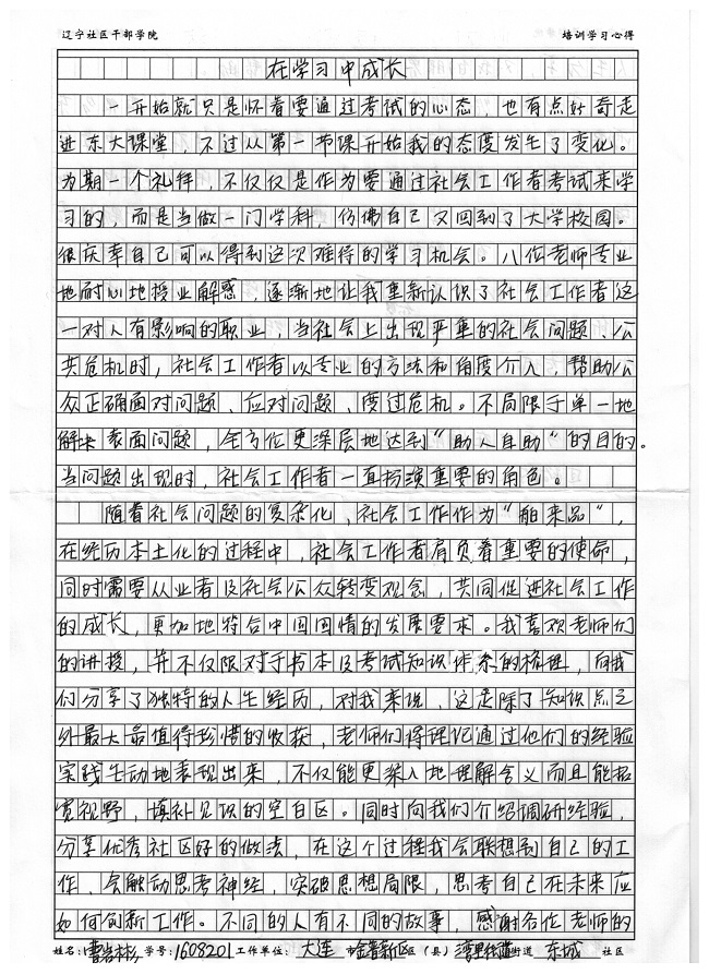 大连市金普新区湾里街道东城社区曹岩彬培训学习心得