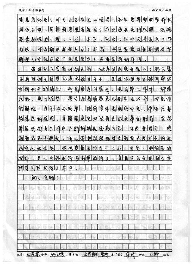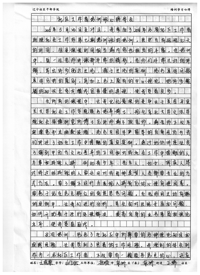 抚顺市东洲区东洲街道乙烯社区王晓棠培训心得
