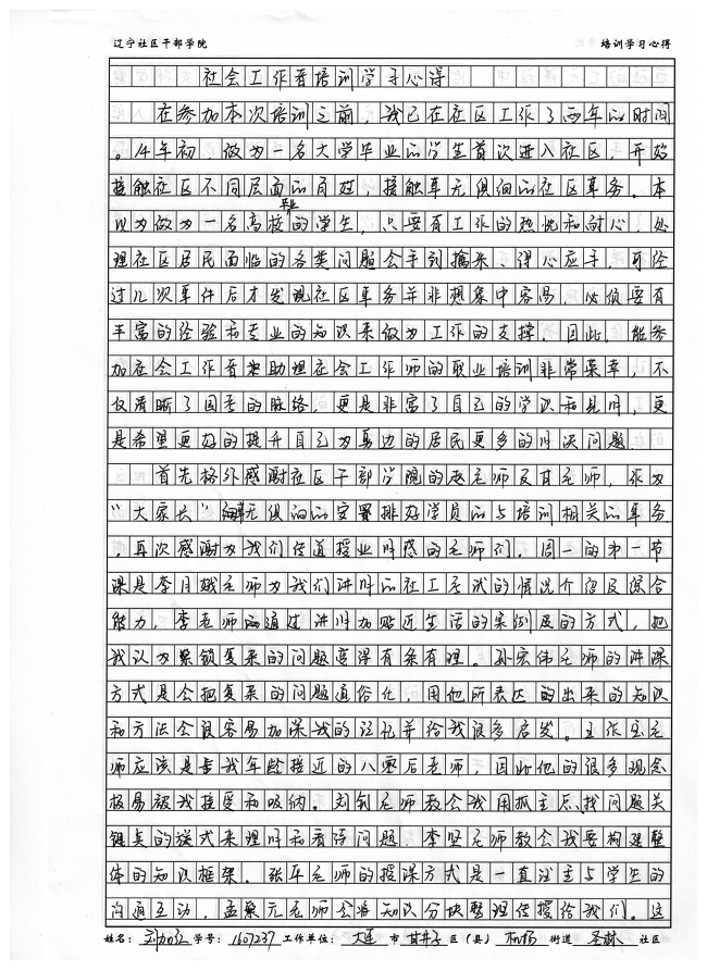 大连市甘井子区机场街道圣林社区刘加红培训心得