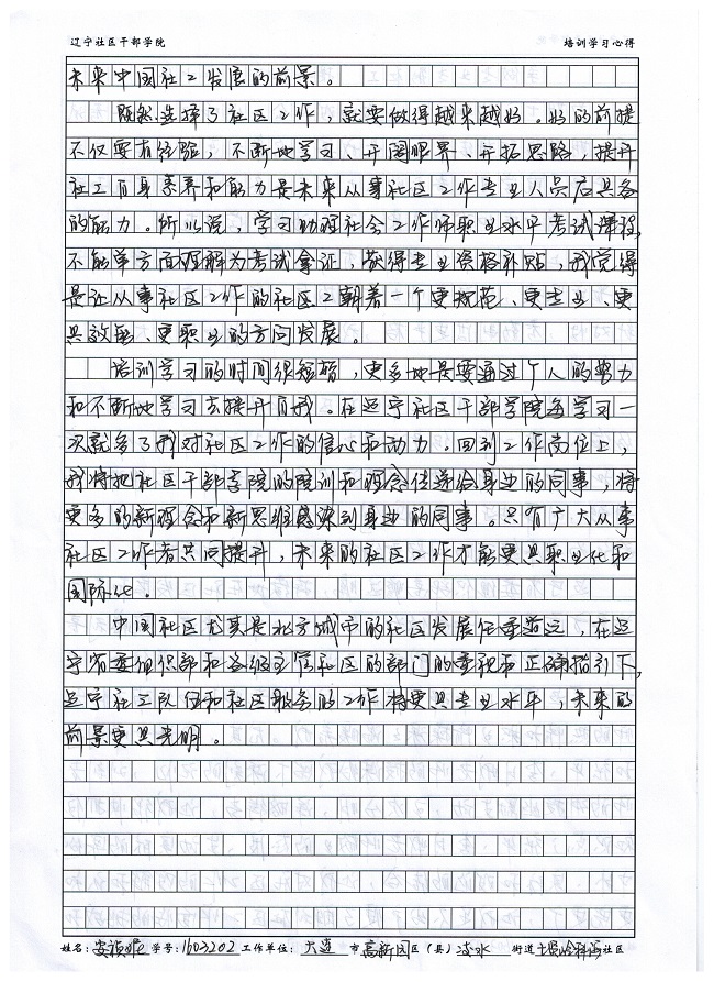 大连市高新园区凌水街道七贤岭社区安祯妮培训学习心得