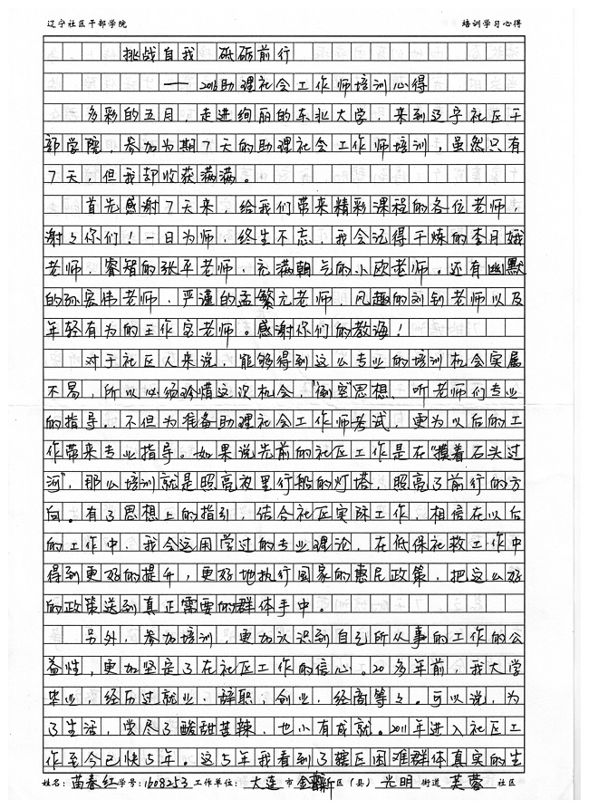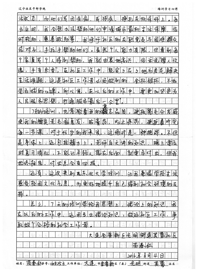 大连市金普新区光明街道芙蓉社区苗春红培训学习心得