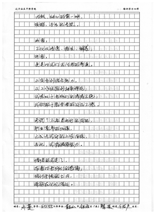 鞍山市铁西区繁荣街道千龙户社区乔蔓学习心得