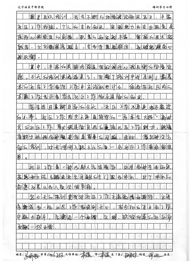 本溪市本溪区田师傅街道河北社区马昕彤培训学习心得