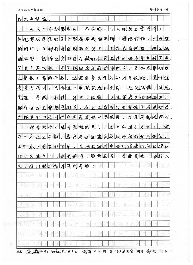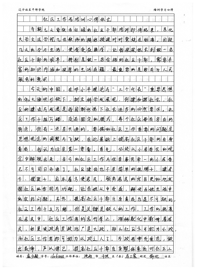 沈阳市于洪区马三家街道御北社区孟少颖学习心得