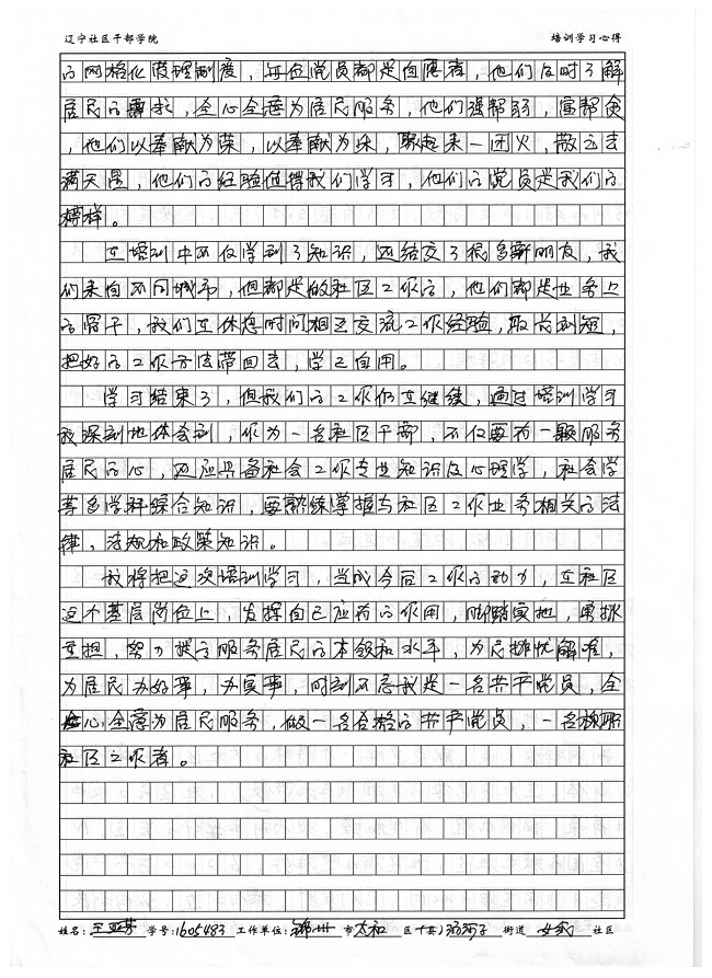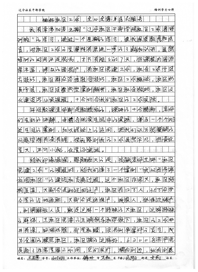 锦州市太和区沙河子街道女纸社区王亚芳学习心得