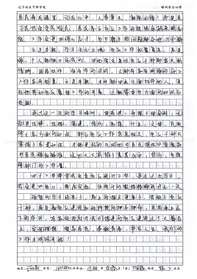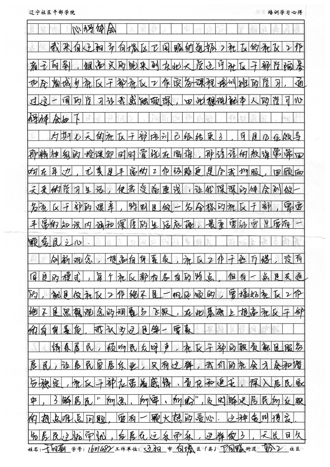 辽阳市白塔区卫国路街道轻工社区于丽莉学习心得