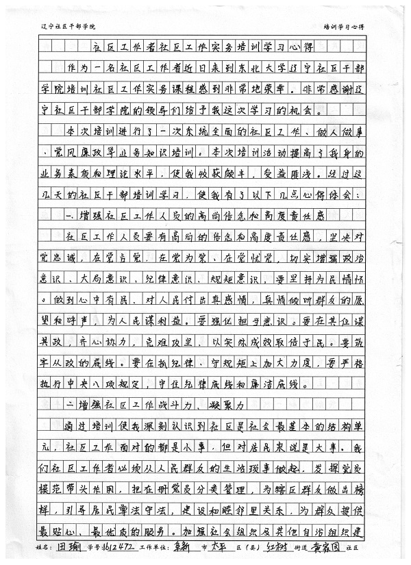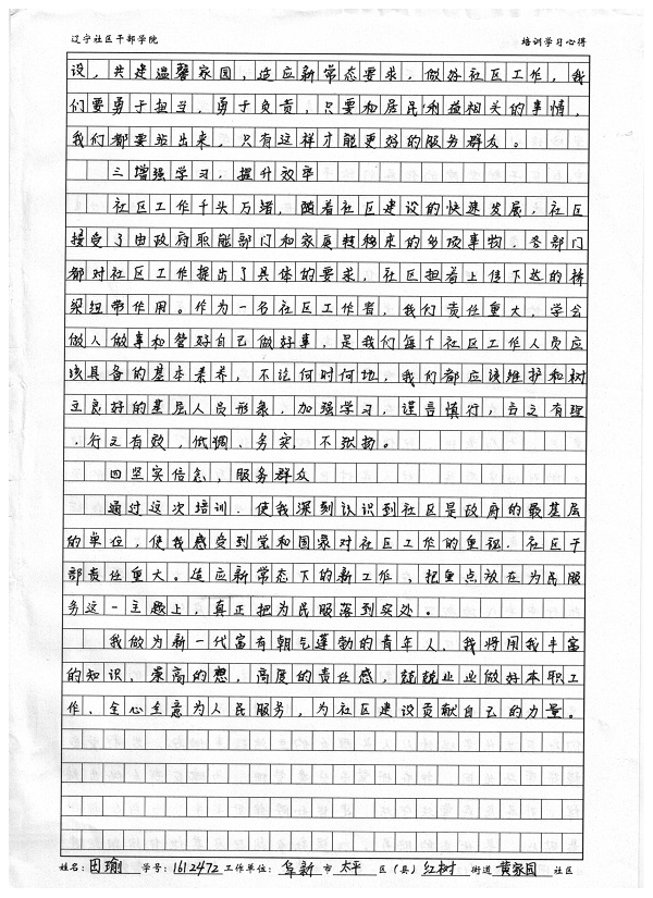 阜新市太平区红树街道黄家园社区 田瑜 培训心得体会