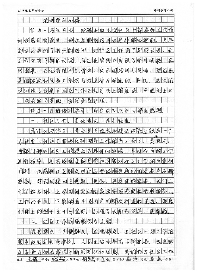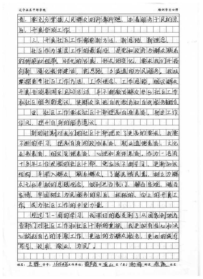 葫芦岛市连山区渤海街道泰康社区王辉学习心得