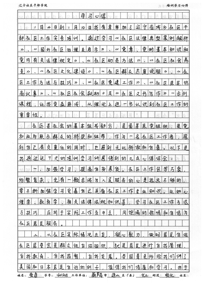 葫芦岛市连山区化工街道顺化社区张勇学习心得