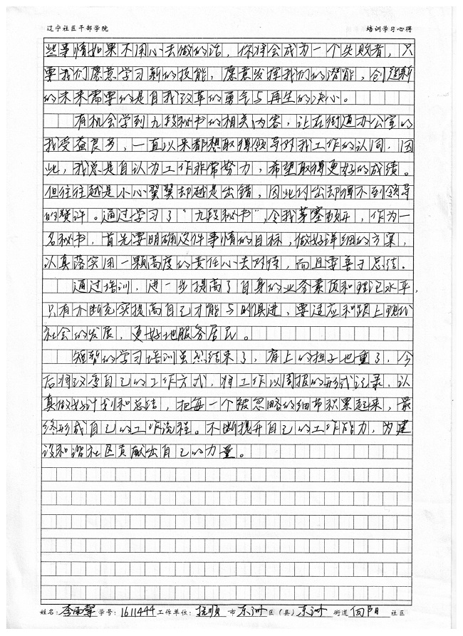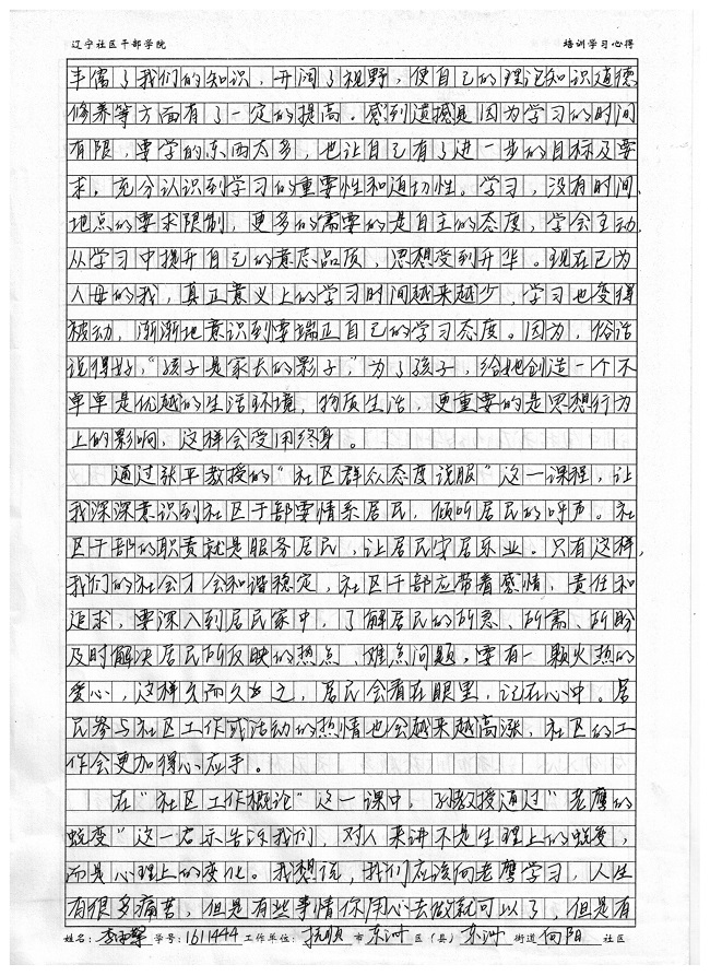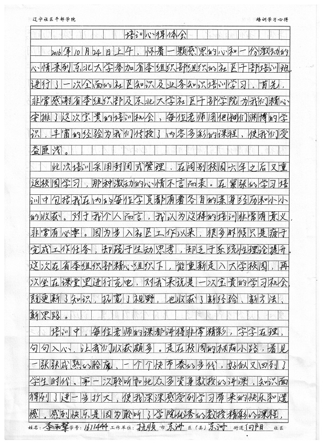 抚顺市东洲区东洲街道向阳社区 李雨擎 培训心得体会
