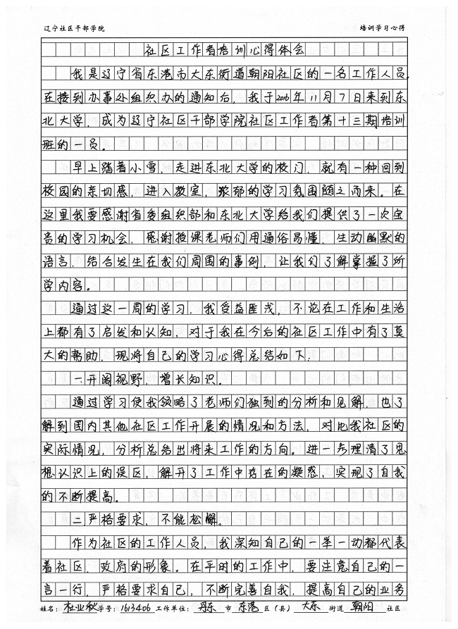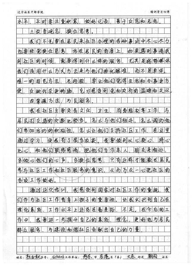 丹东市东港市大东街道朝阳社区杜业秋培训学习心得