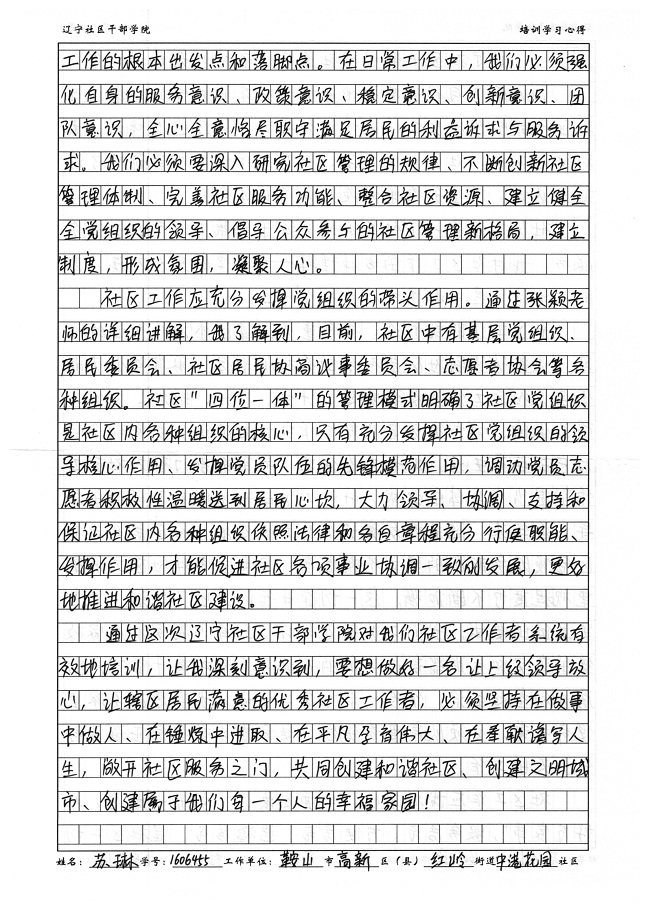 鞍山市高新区红岭街道中港花园社区苏琳学习心得