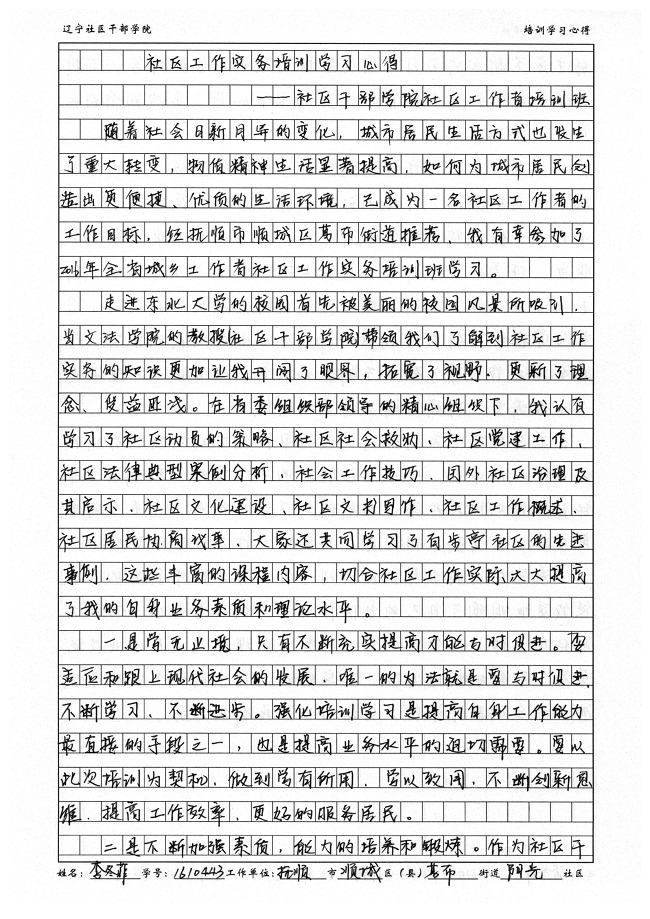 抚顺市顺城区葛布街道阳光社区李冬菲学习心得