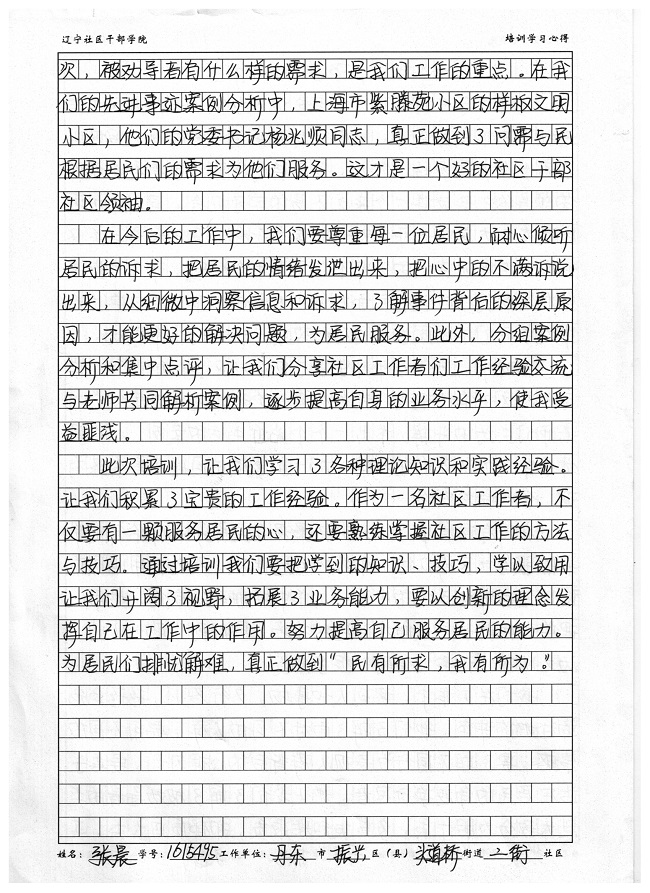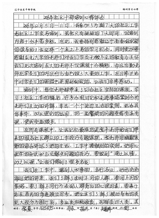 丹东市振兴区头道桥街道二街社区张晨培训心得