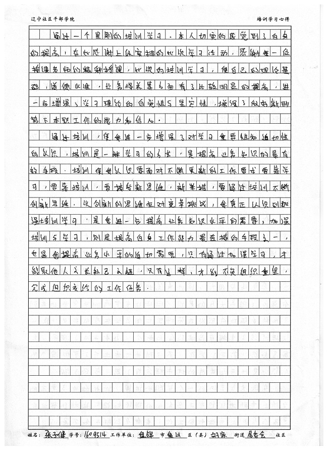 盘锦市盘山区胡家街道居委会社区张子健学习心得