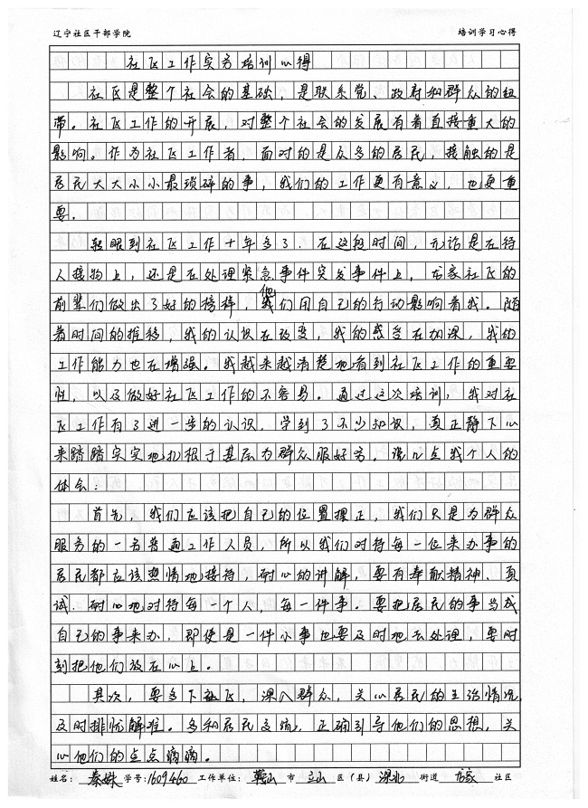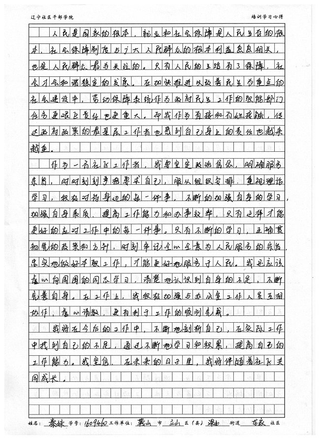 .鞍山市立山区深北街道龙家社区秦姝学习心得