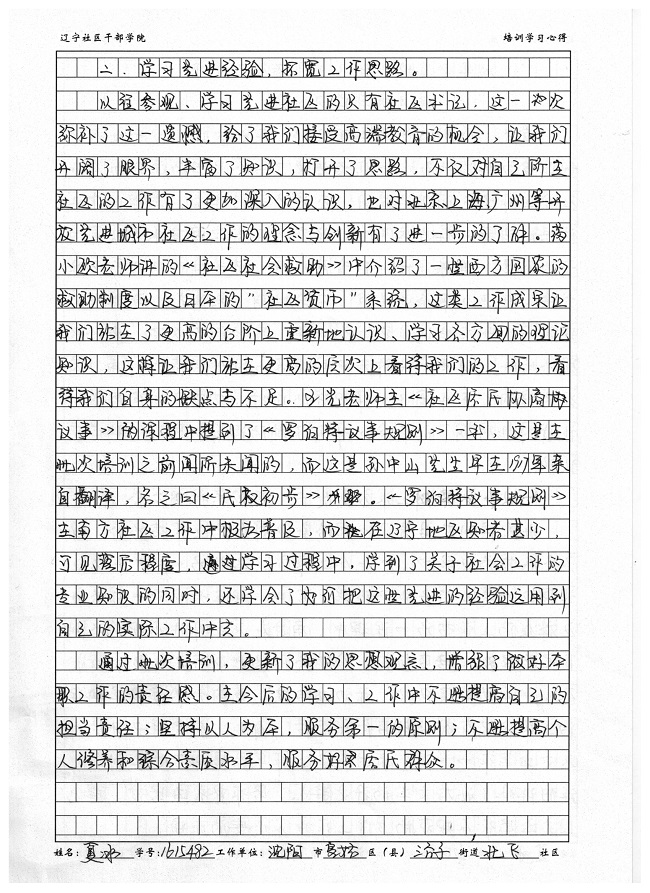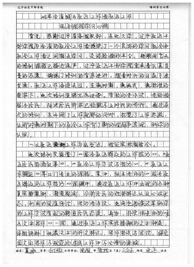 沈阳市皇姑区三台子街道北区社区夏冰培训心得