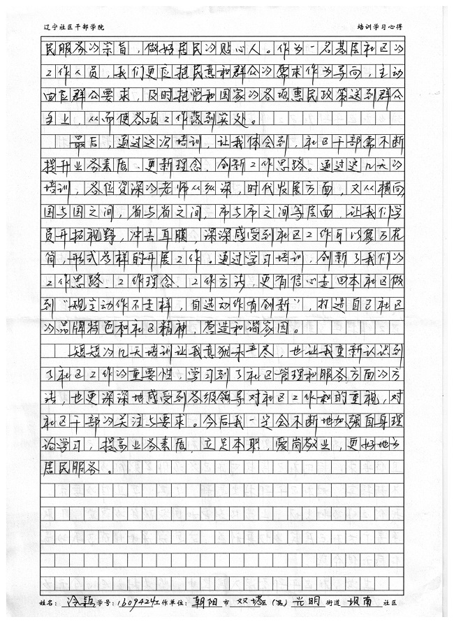 朝阳市双塔区光明街道坝南社区冷颖学习心得