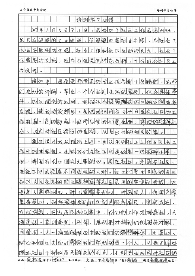 大连市金浦新区海清岛街道金源北里社区梁祎杰学习心得