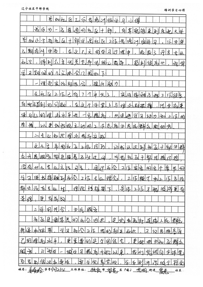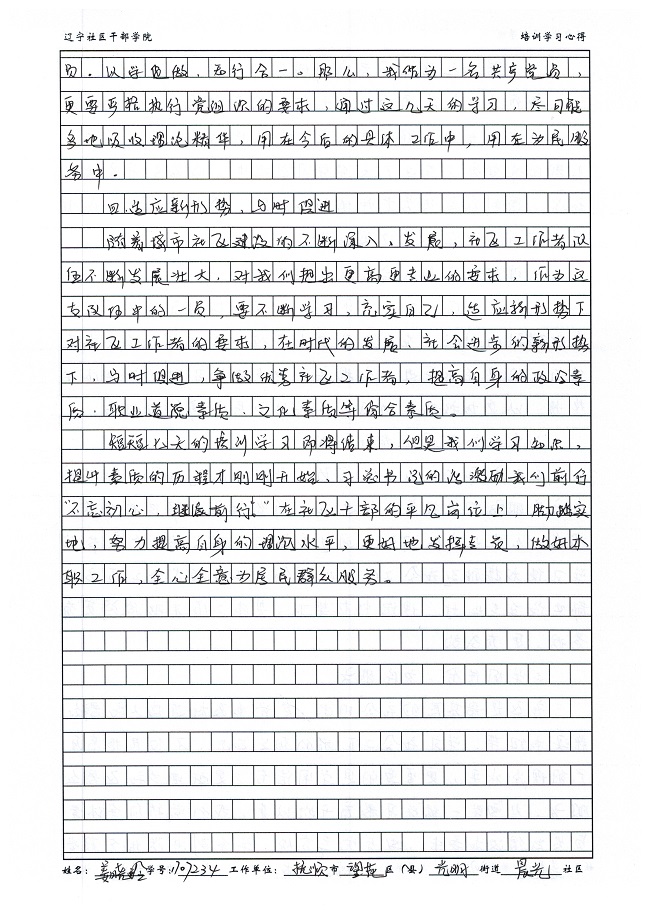 抚顺市望花区光明街道晨光社区姜晓玲学习心得