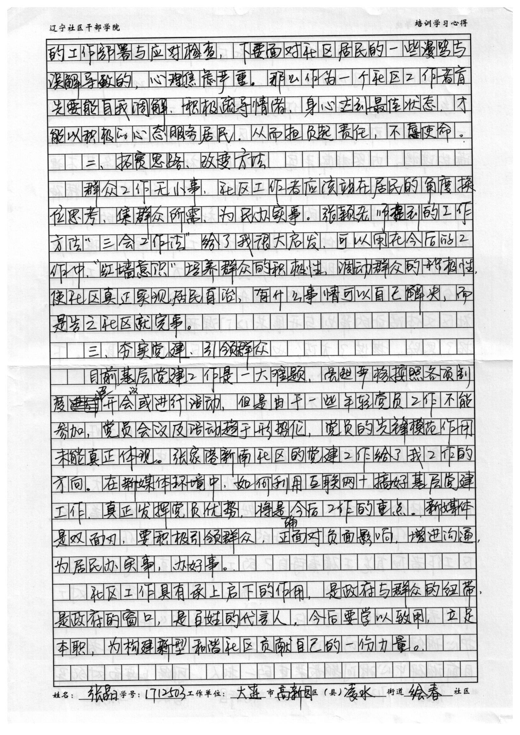 大连市高新园区凌水街道绘春社区张晶培训心得体会