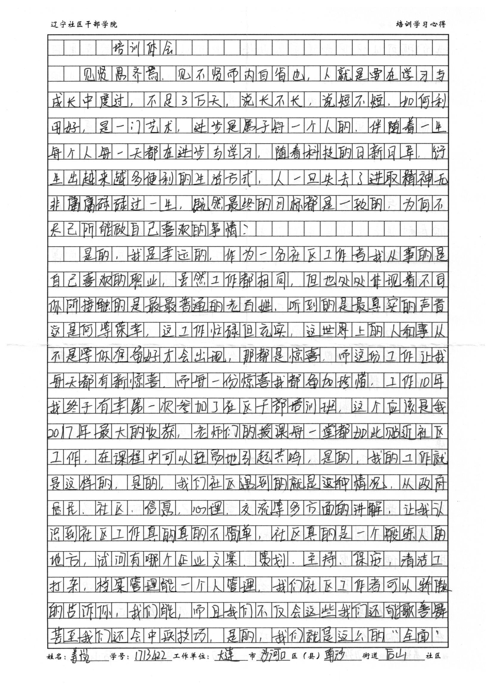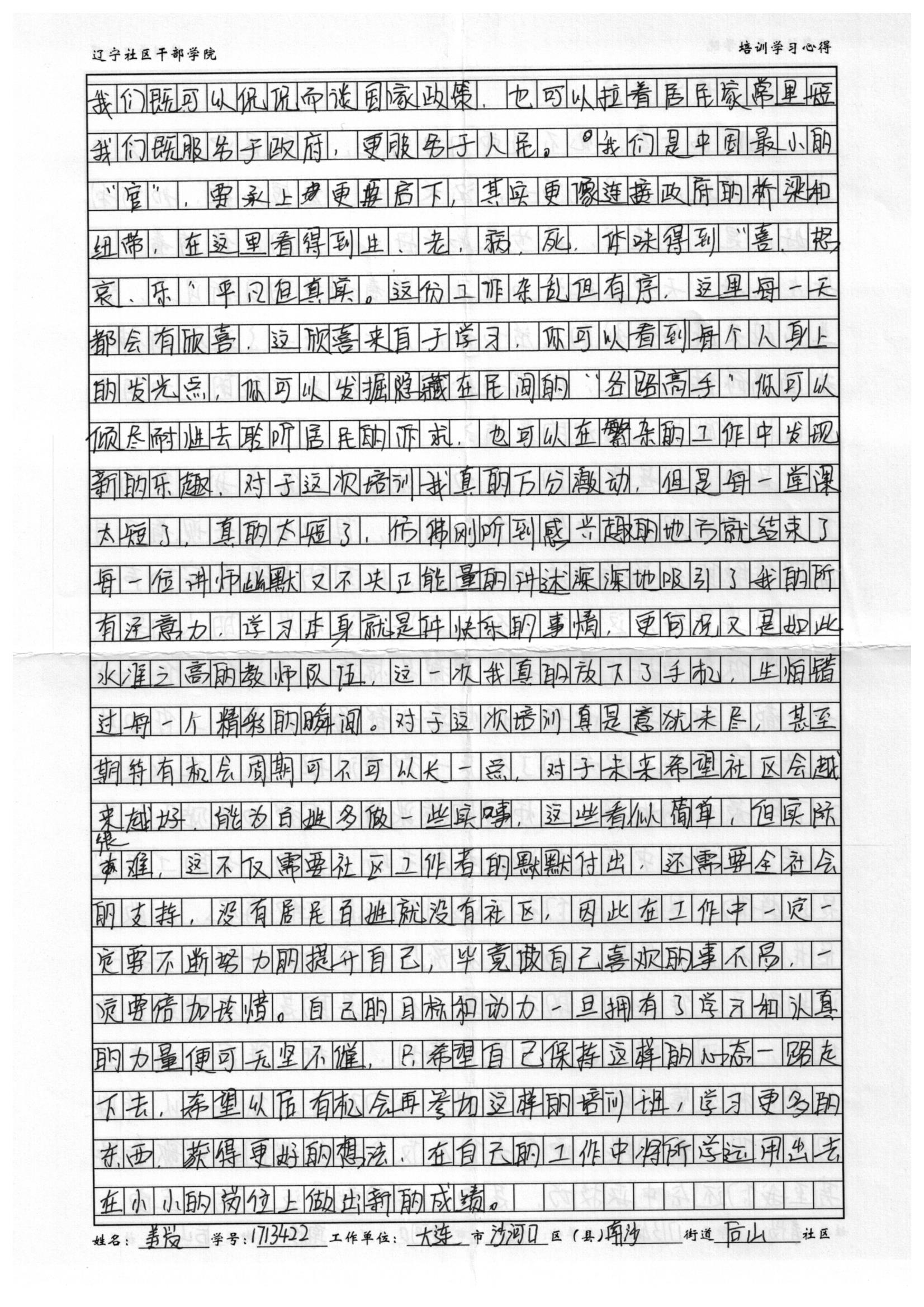 大连市沙河口区南沙街道后山社区姜岚培训心得