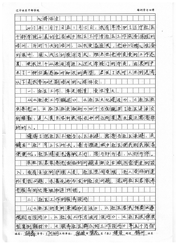 抚顺市望花区建设街道锦州社区胡晶培训心得体会