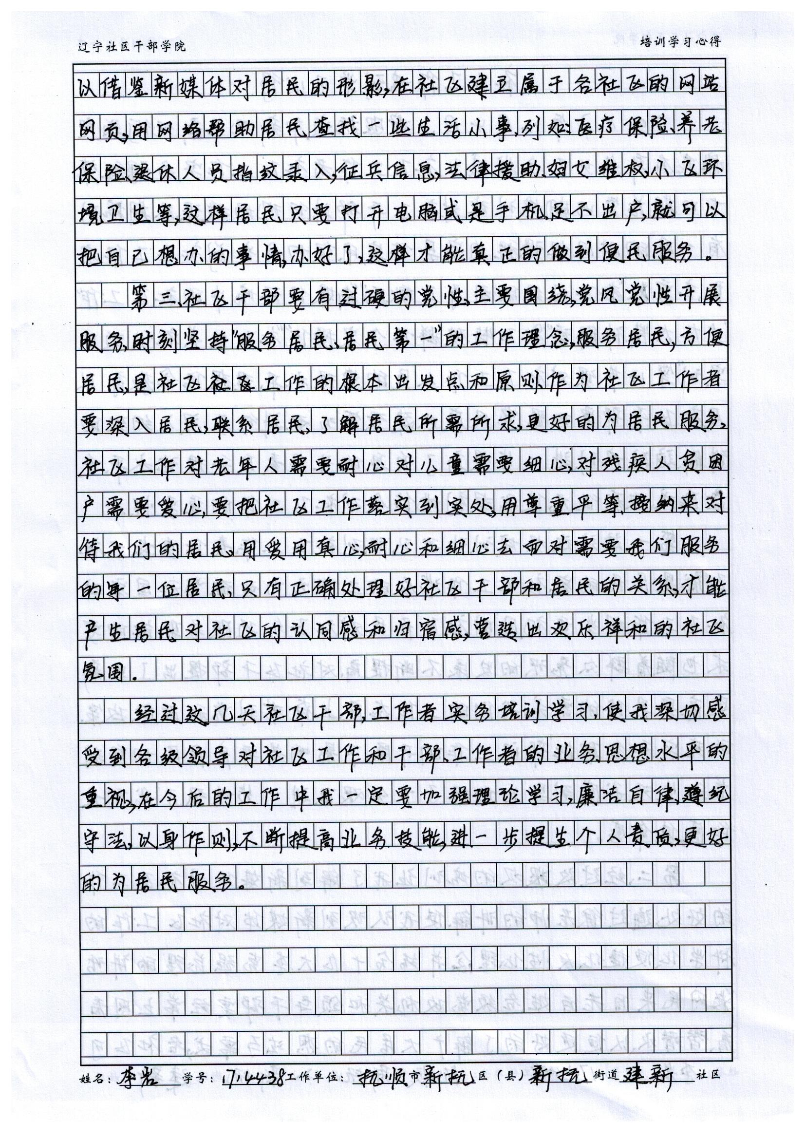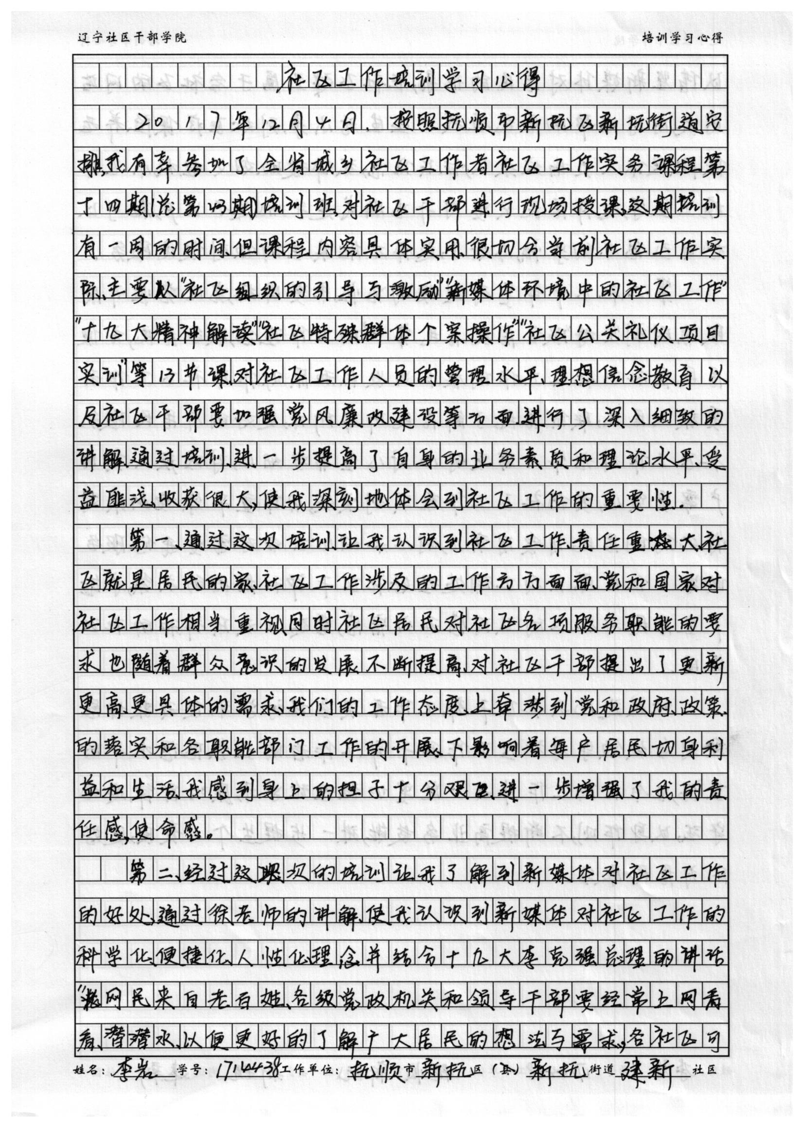 抚顺市新抚区新抚街道建新社区李岩培训学习心得