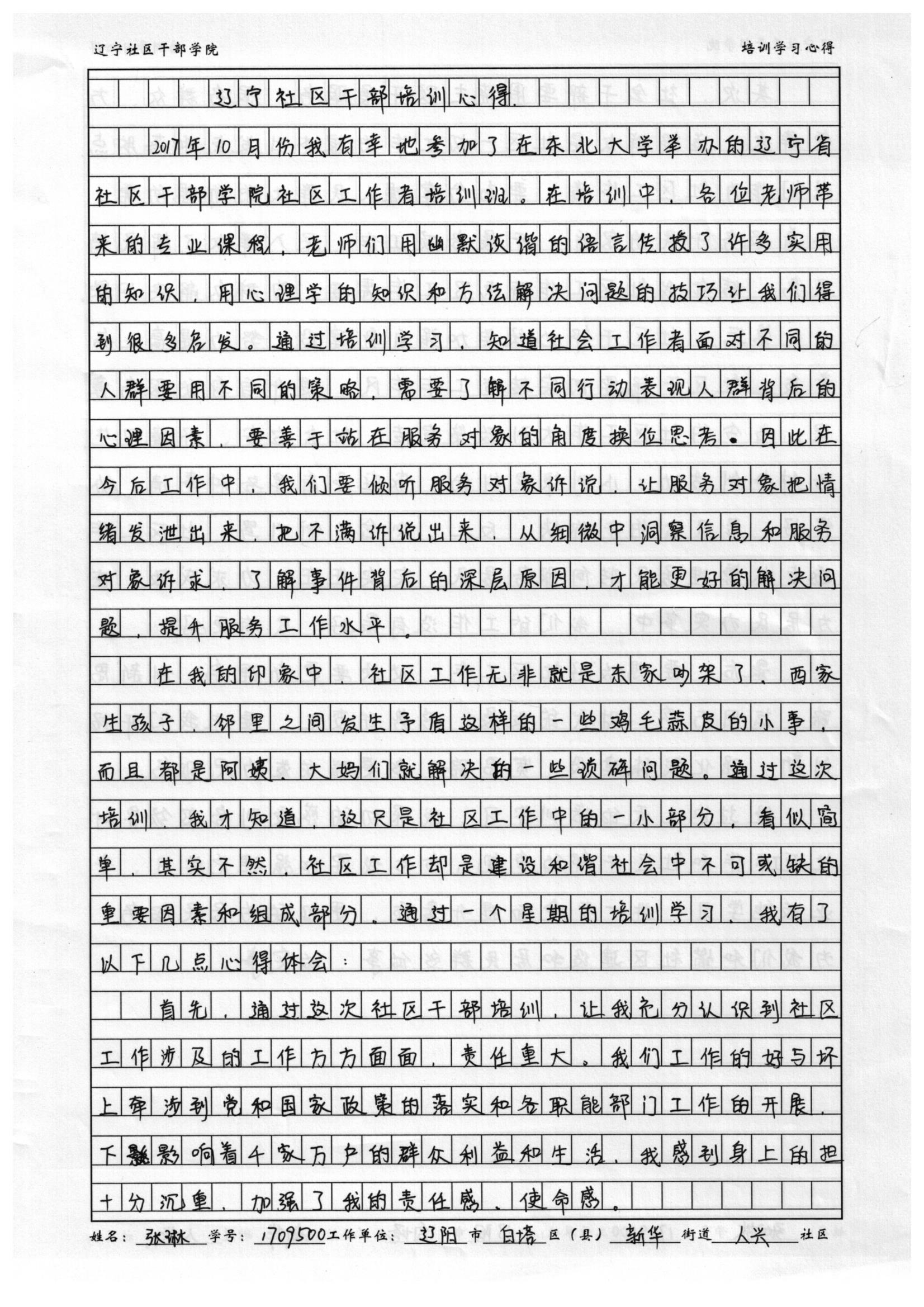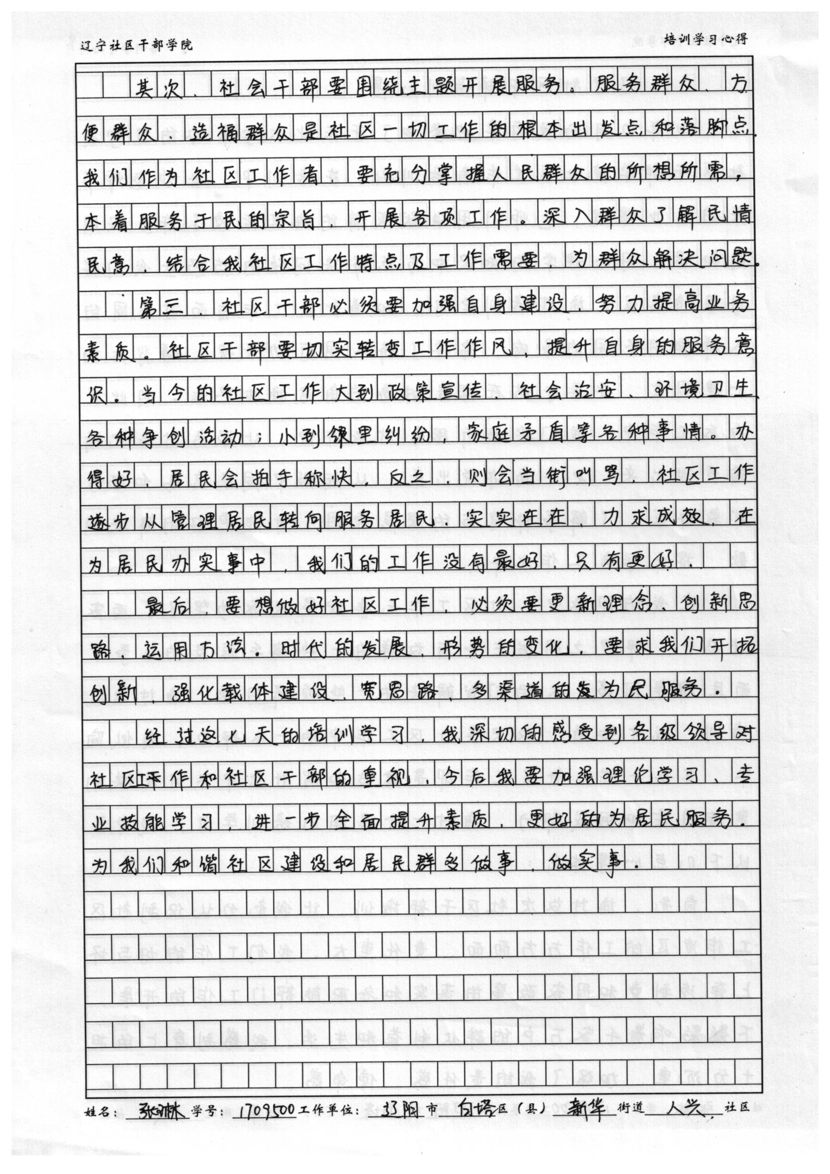 辽阳市白塔区新华街道人兴社区张琳学习心得