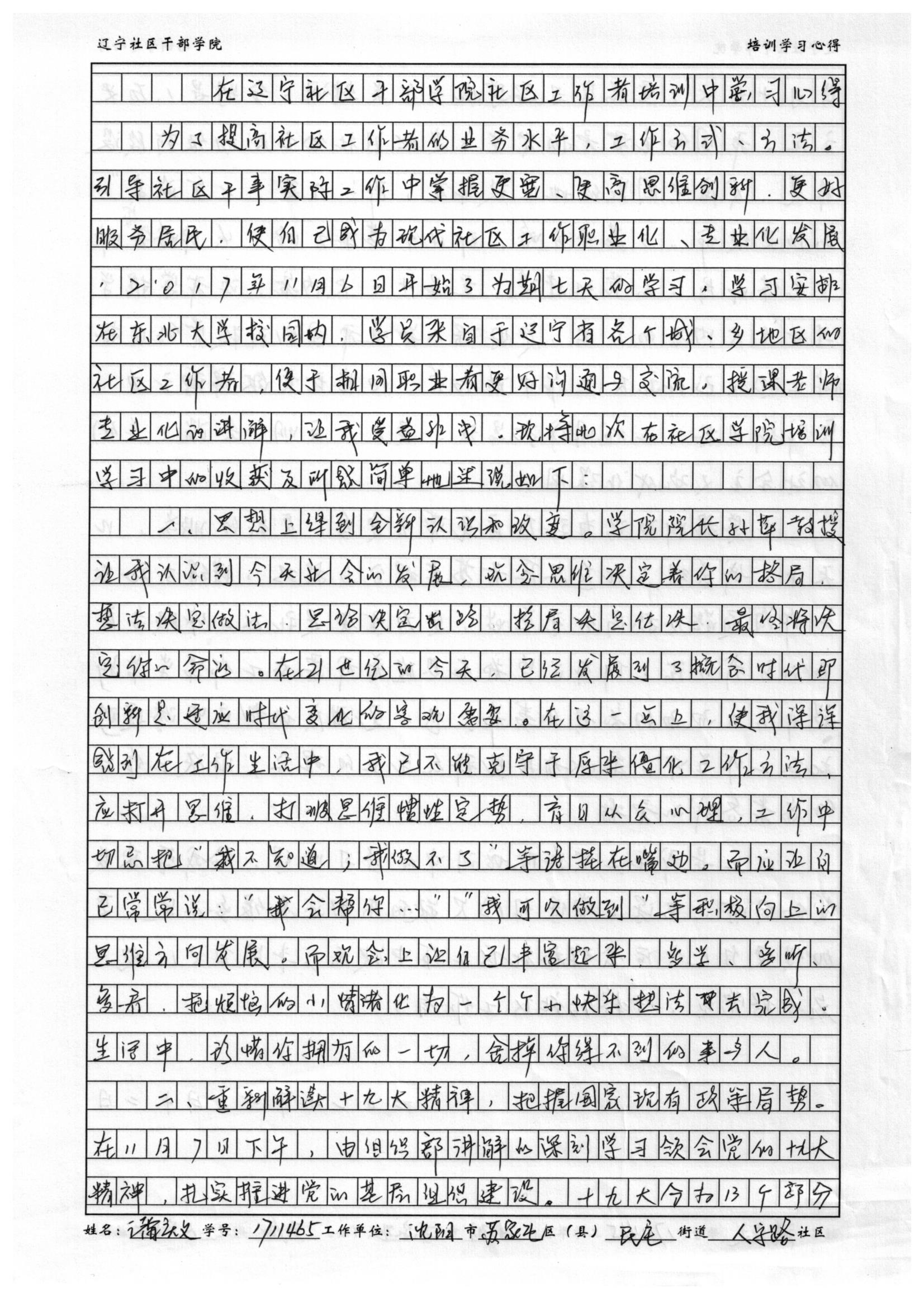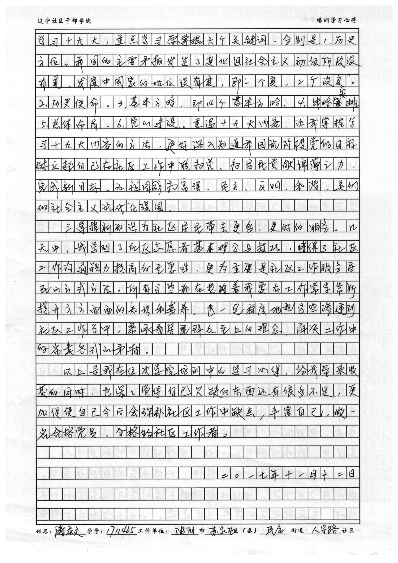 沈阳市苏家屯区民主街道人字路社区潘庆文学习心得