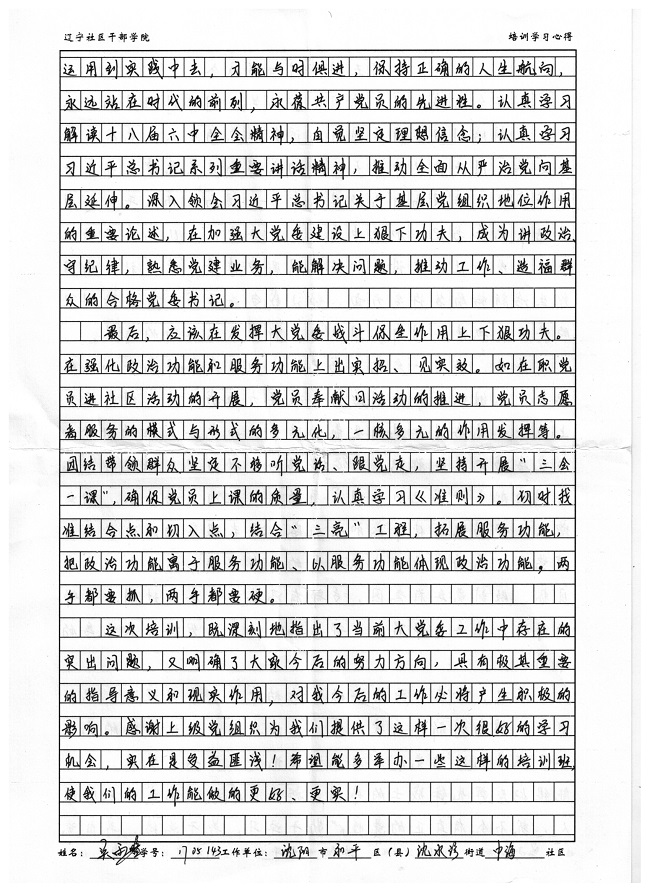 沈阳市和平区沈水湾街道中海社区吴雨瞳学习心得