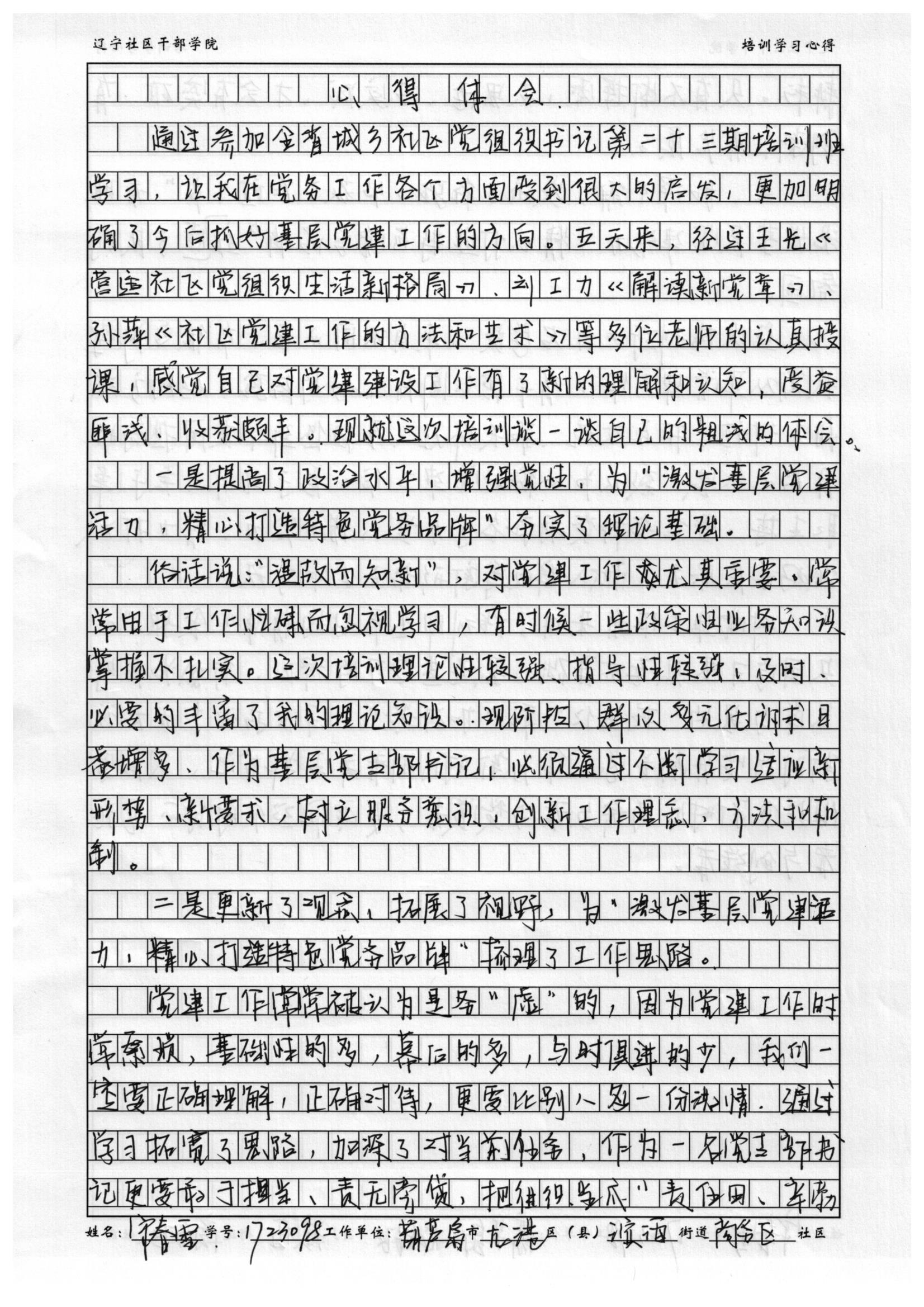 葫芦岛市龙港区滨海街道商务区社区宋春雪培训心得