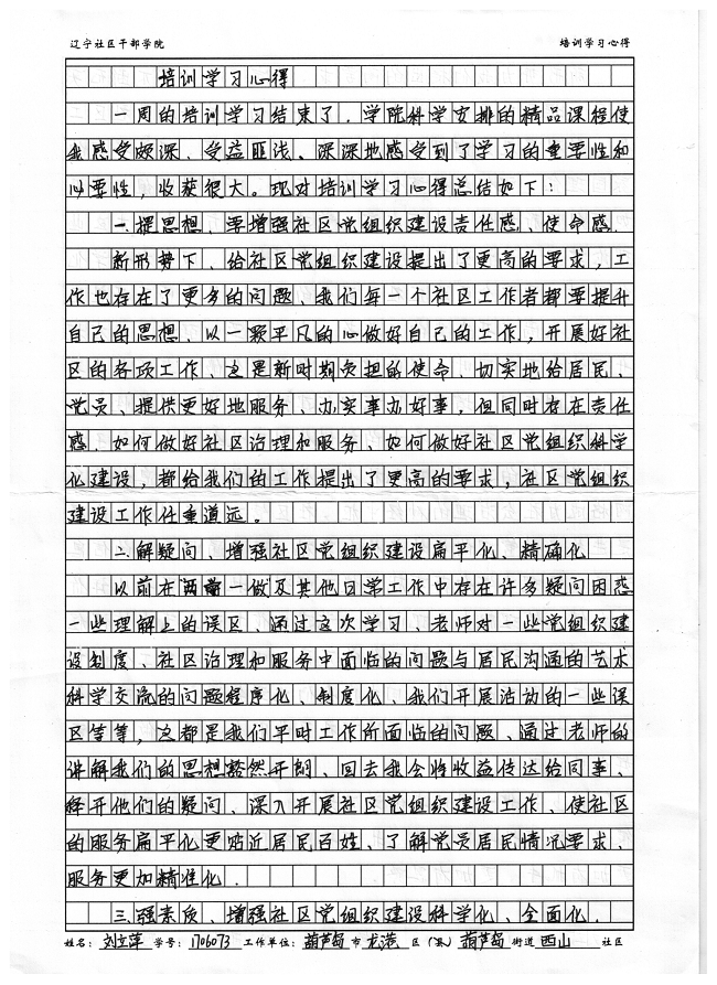 葫芦岛市龙港区葫芦岛西山社区-刘立萍学习心得