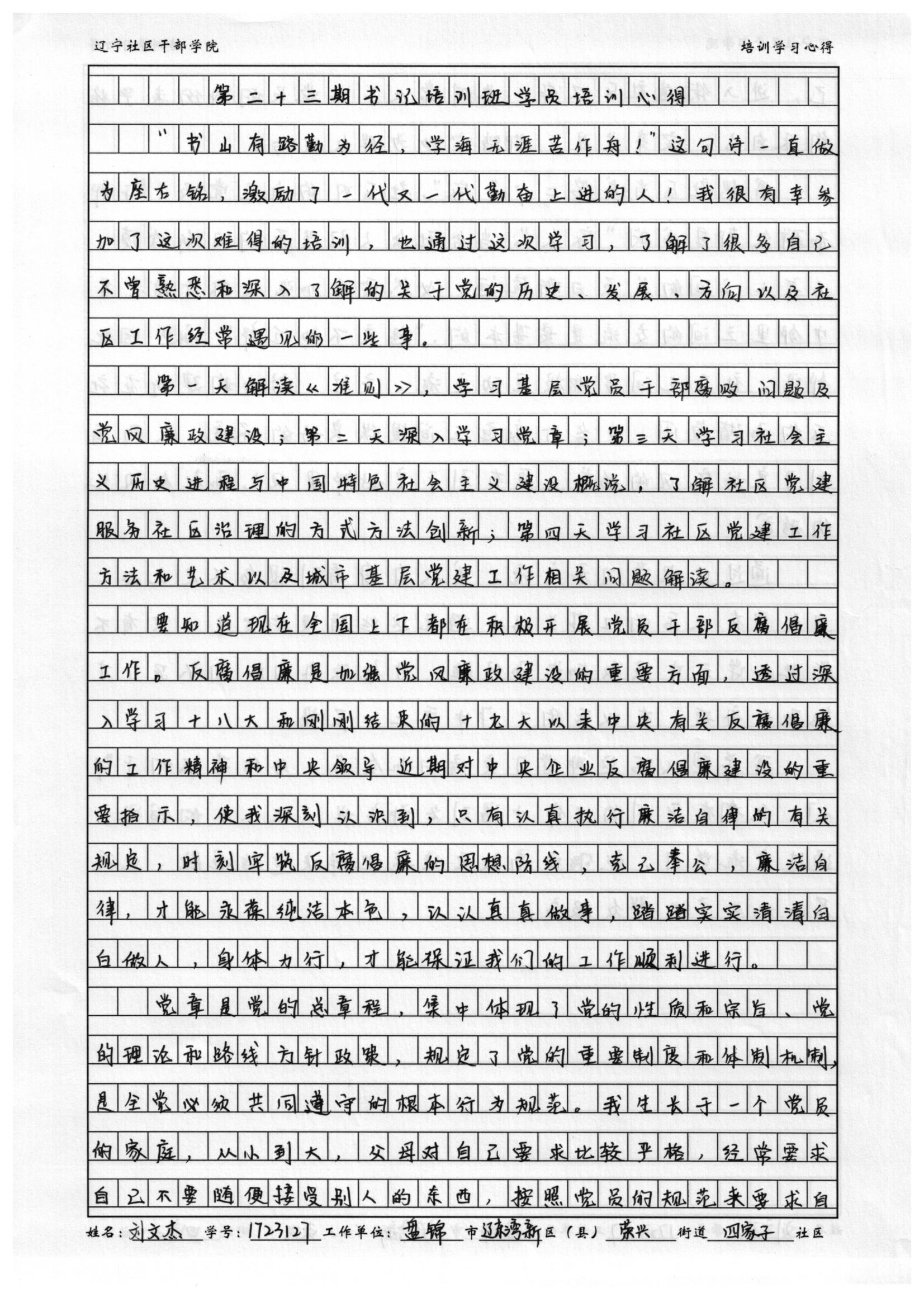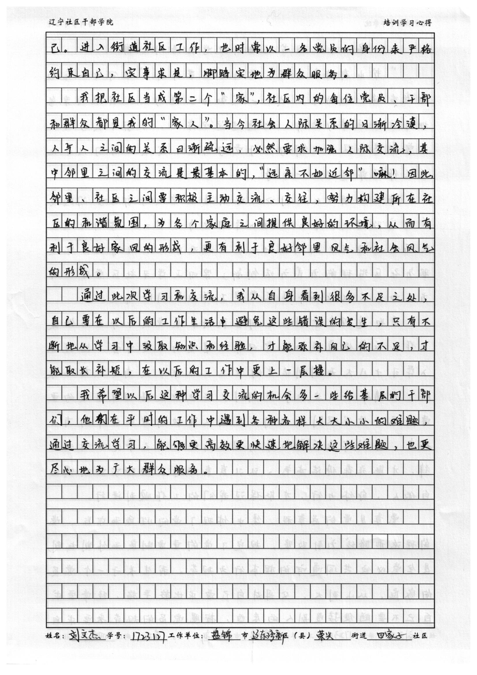 盘锦市辽东湾新区荣兴街道四家子社区刘文杰培训心得