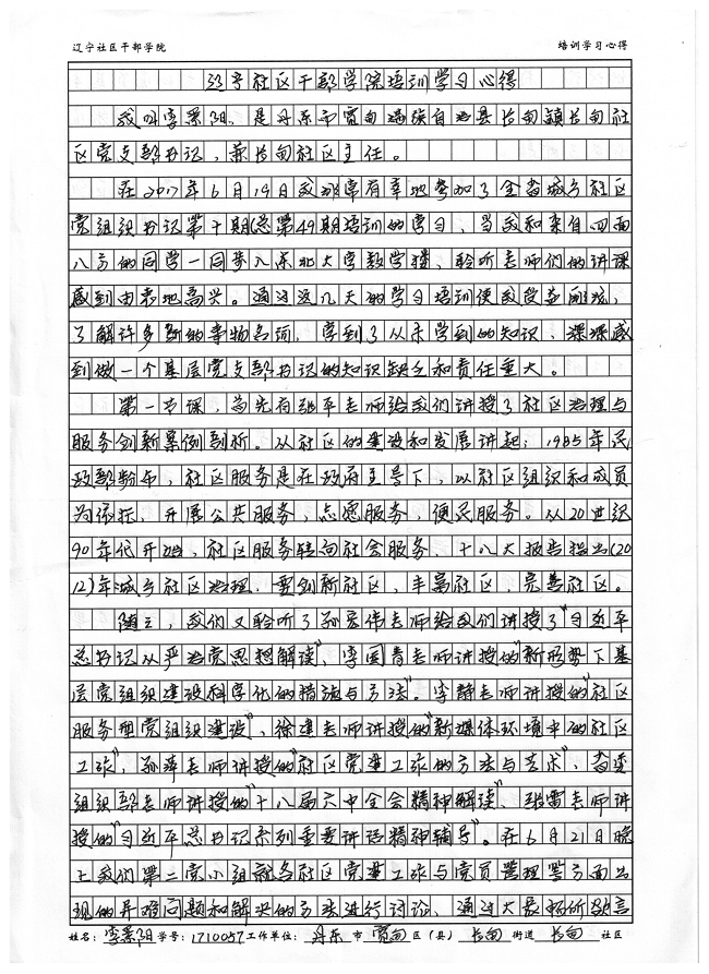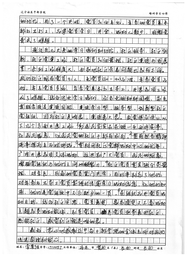 丹东市宽甸满族自治县长甸镇长甸社区书记李景阳培训心得培训心得