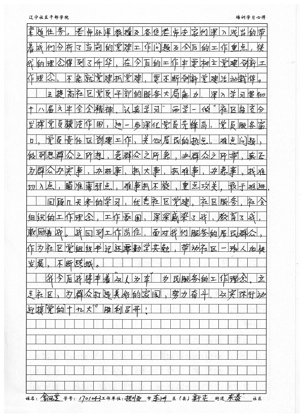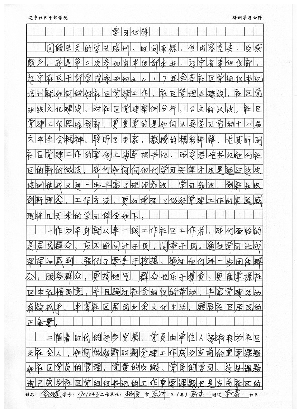 抚顺市东洲区新屯街道东泰社区金凤芝培训心得体会