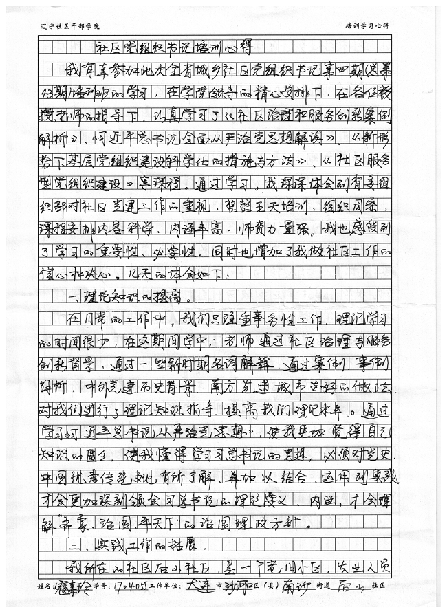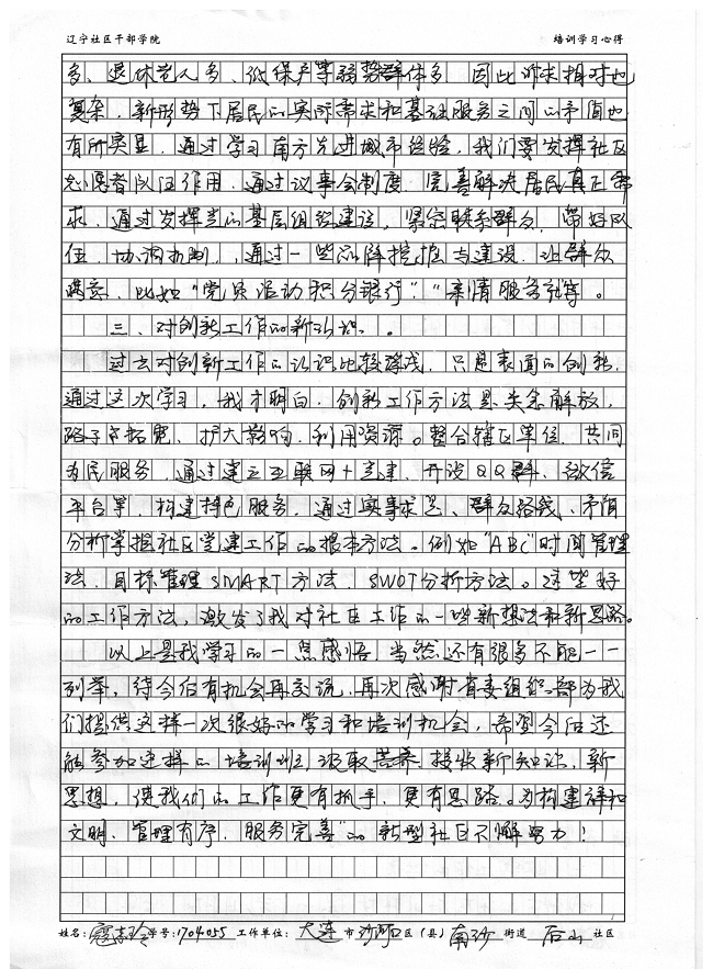 大连市沙河口区南沙街道后山社区寇素玲培训心得