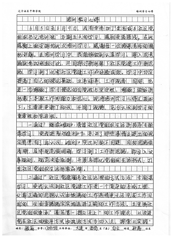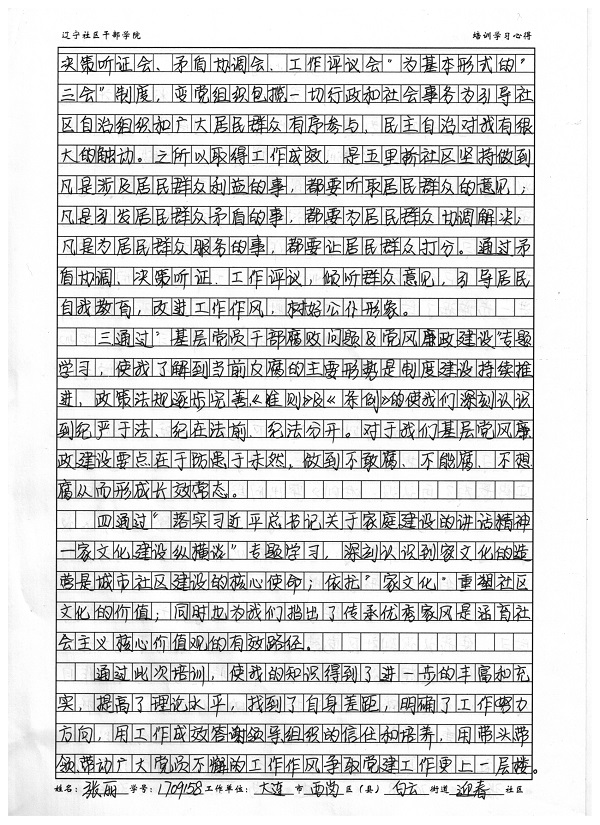 大连市西岗区白云街道迎春社区 张丽培训心得