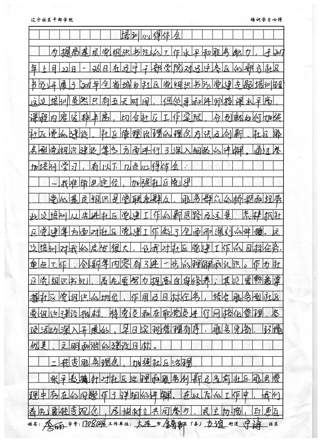 大连金普新区友谊街道宁海社区李丽培训心得