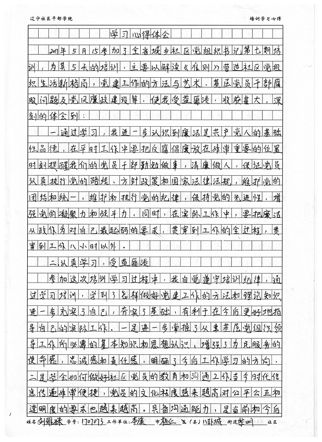 本溪市桓仁县八卦城街道黎明社区刘雅姝学习心得