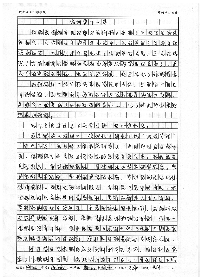 鞍山市铁西区共和街道共同社区刘虹学习心得