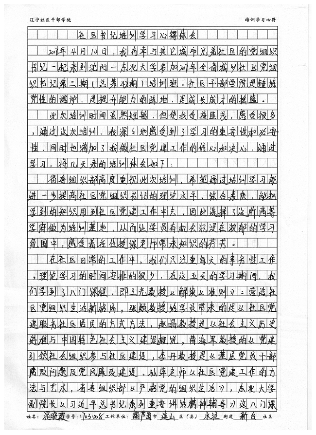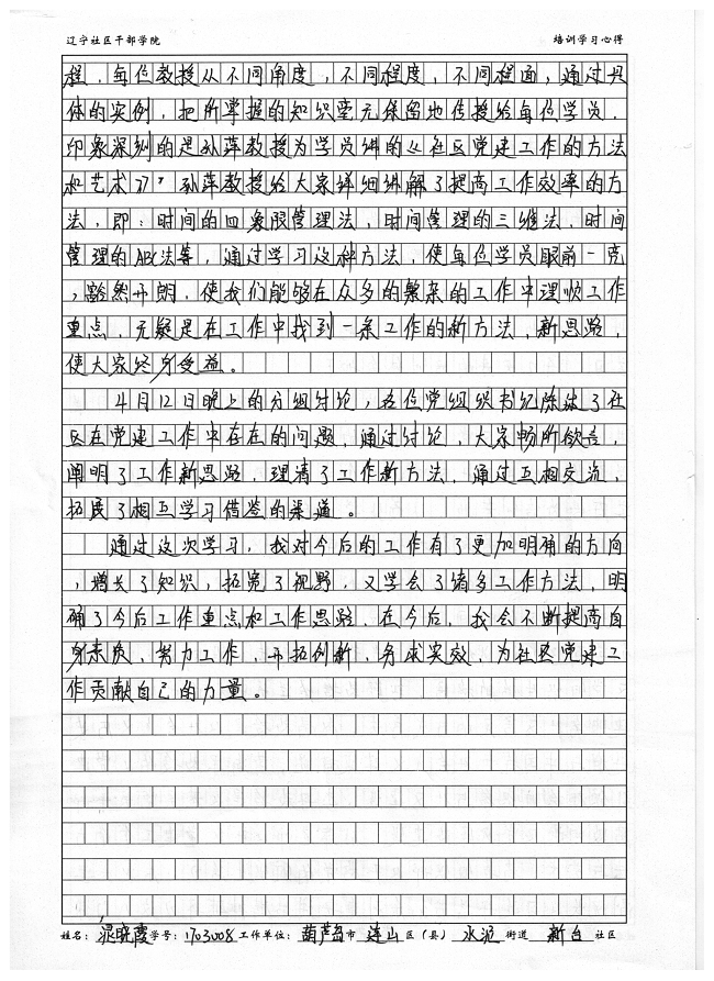 葫芦岛市连山区水泥街道新台社区党总支书记晁晓霞培训心得