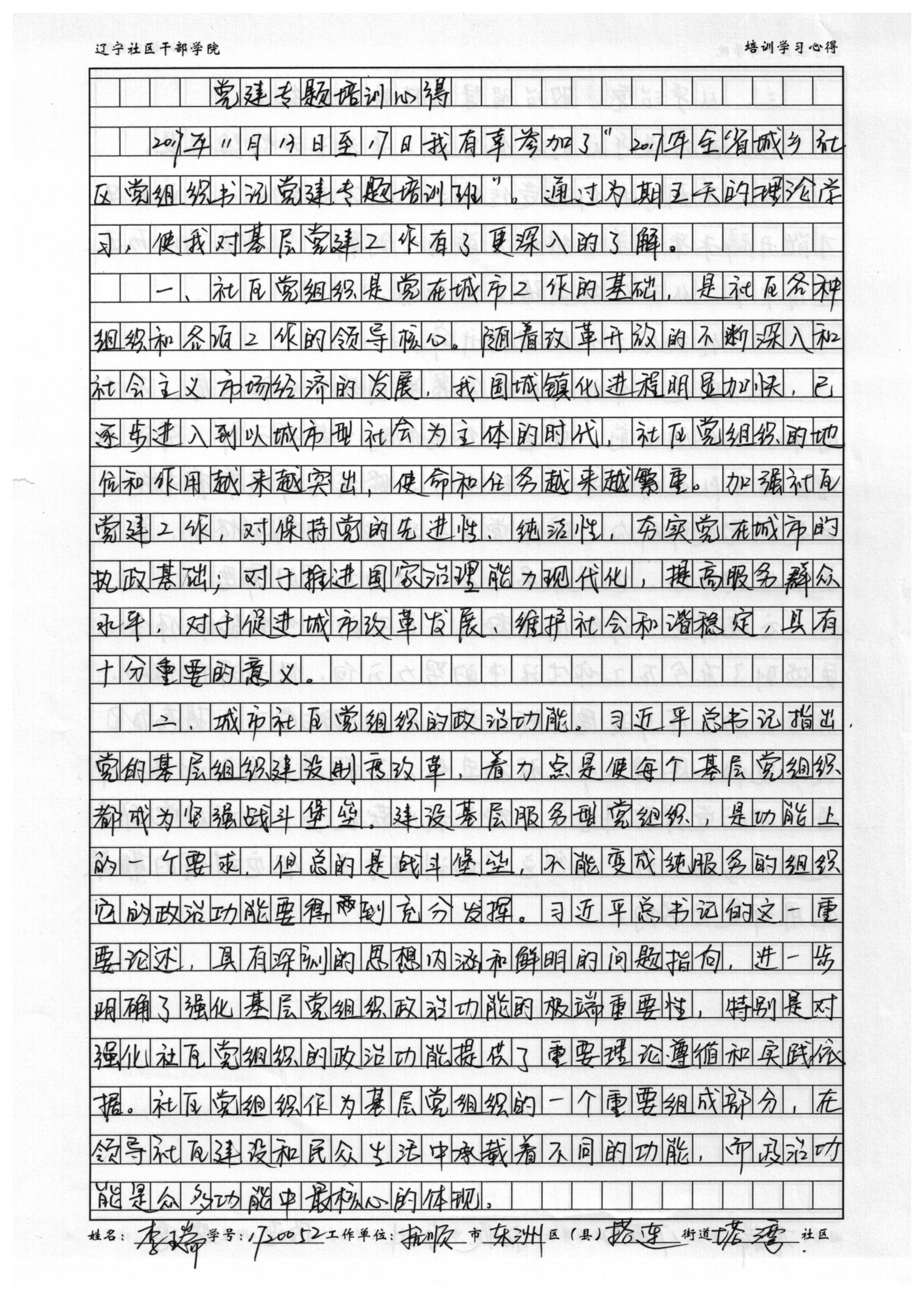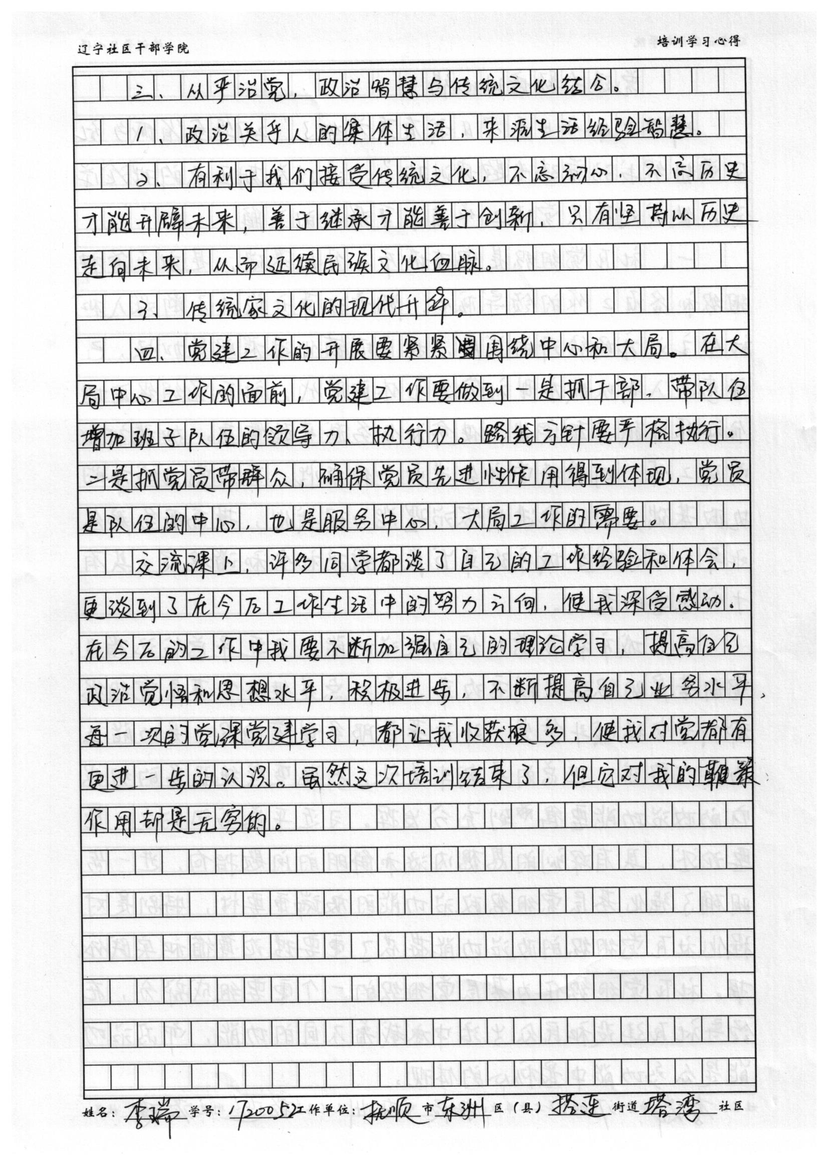 抚顺市东洲区搭连街道塔湾社区李瑞培训心得体会