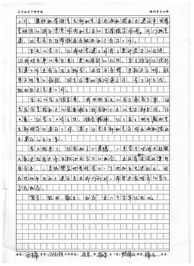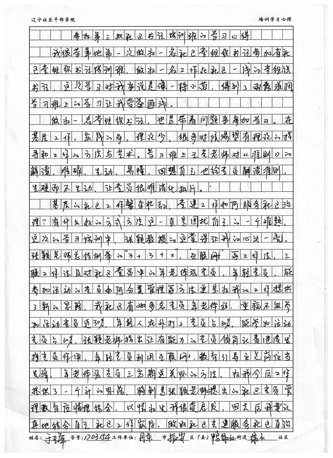丹东市振安区鸭绿江街道绿云社区党委副书记于亚平培训心得