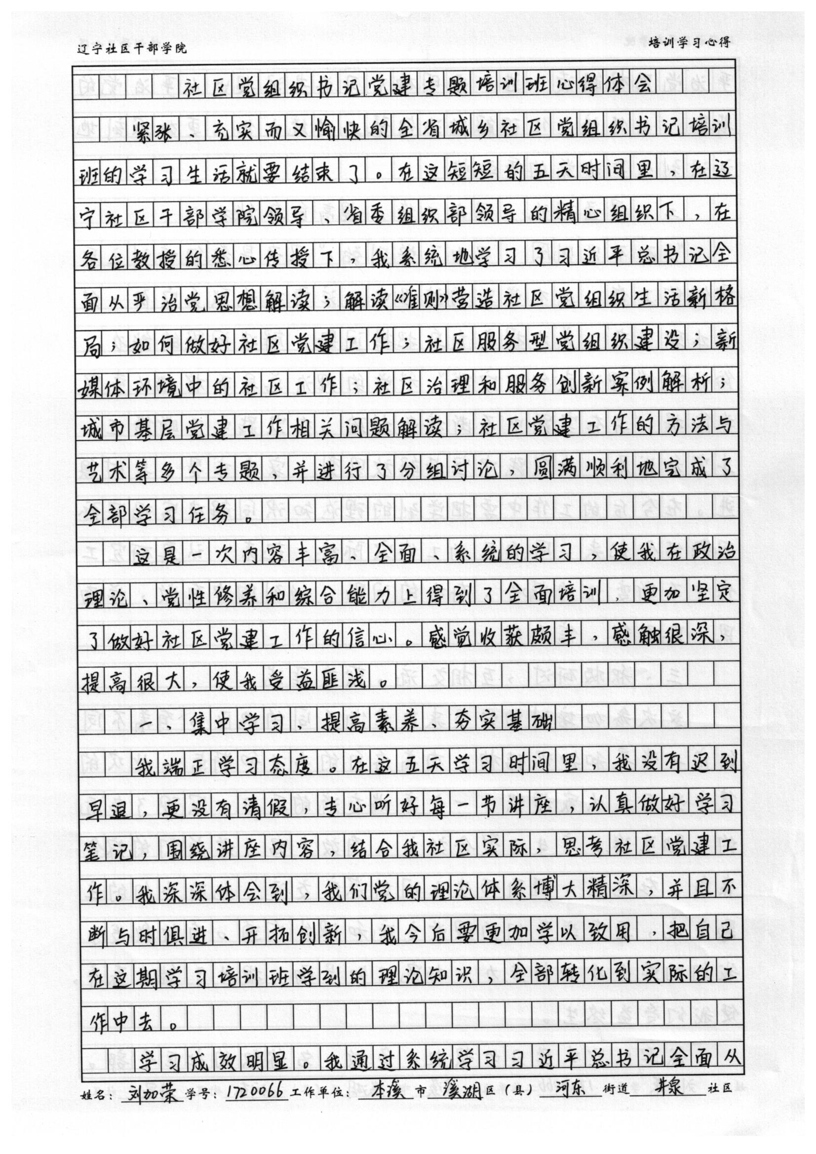 本溪市溪湖区河东街道井泉社区刘加荣培训心得体会