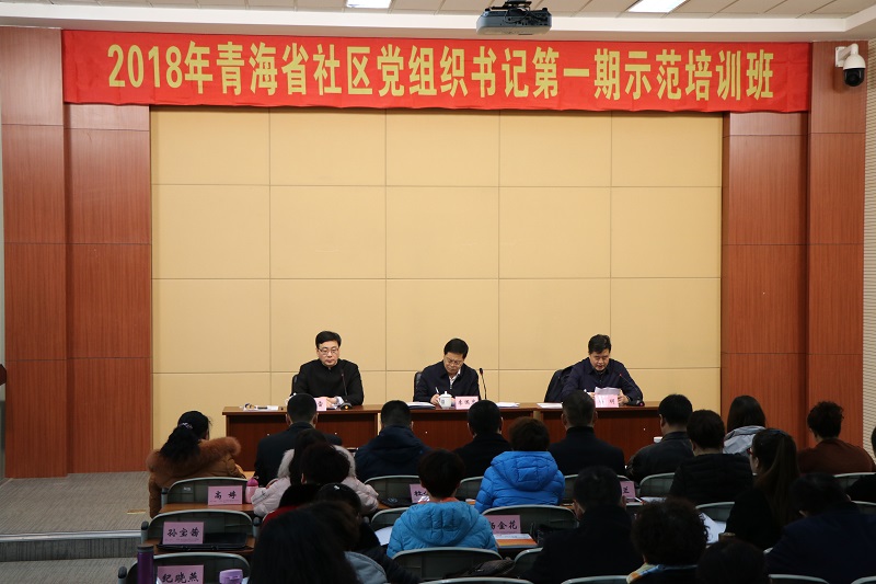 2018年3月12日上午9:00,青海省社区党组织书记第一期示范培训班在东北大学辽宁社区干部学院正式开班。青海省委组织部副部长李国忠同志,东北大学党委副书记、纪委书记、辽宁社区干部学院常务副院长杨明同志,东北大学文法学院党委书记、辽宁社区干部学院副院长张雷同志出席开班式。参加开班式的还有,青海省社区党组织书记示范培训班全体学员、青海省委组织部、东北大学、辽宁社区干部学院有关工作人员。