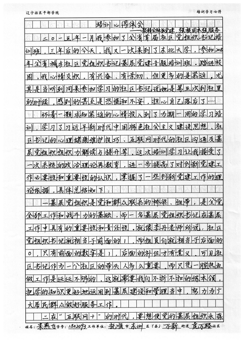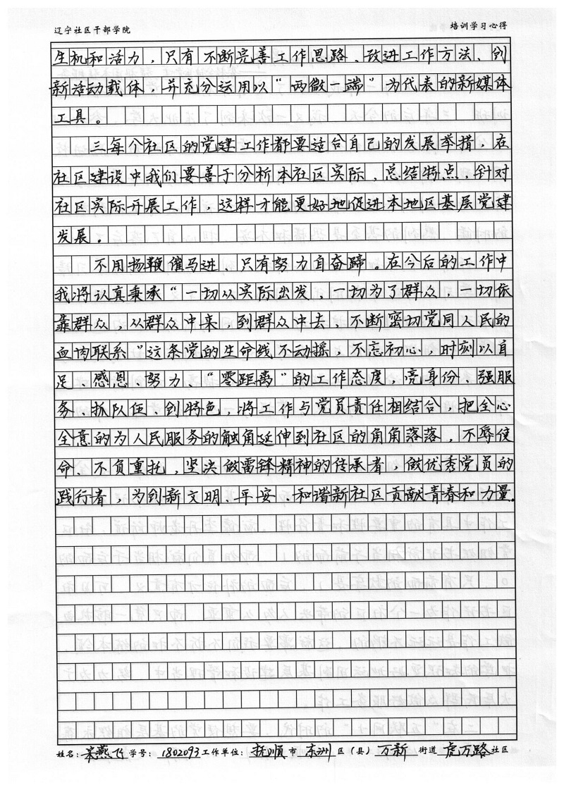 抚顺市东洲区万新街道虎万路社区宋燕飞培训心得