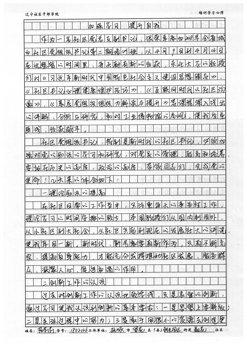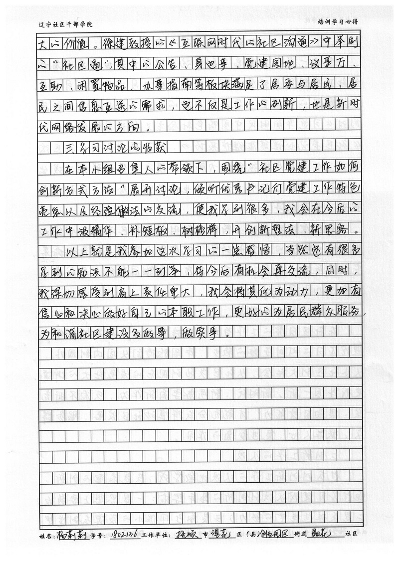抚顺市望花区创业园区晶花社区杨莉莉培训心得