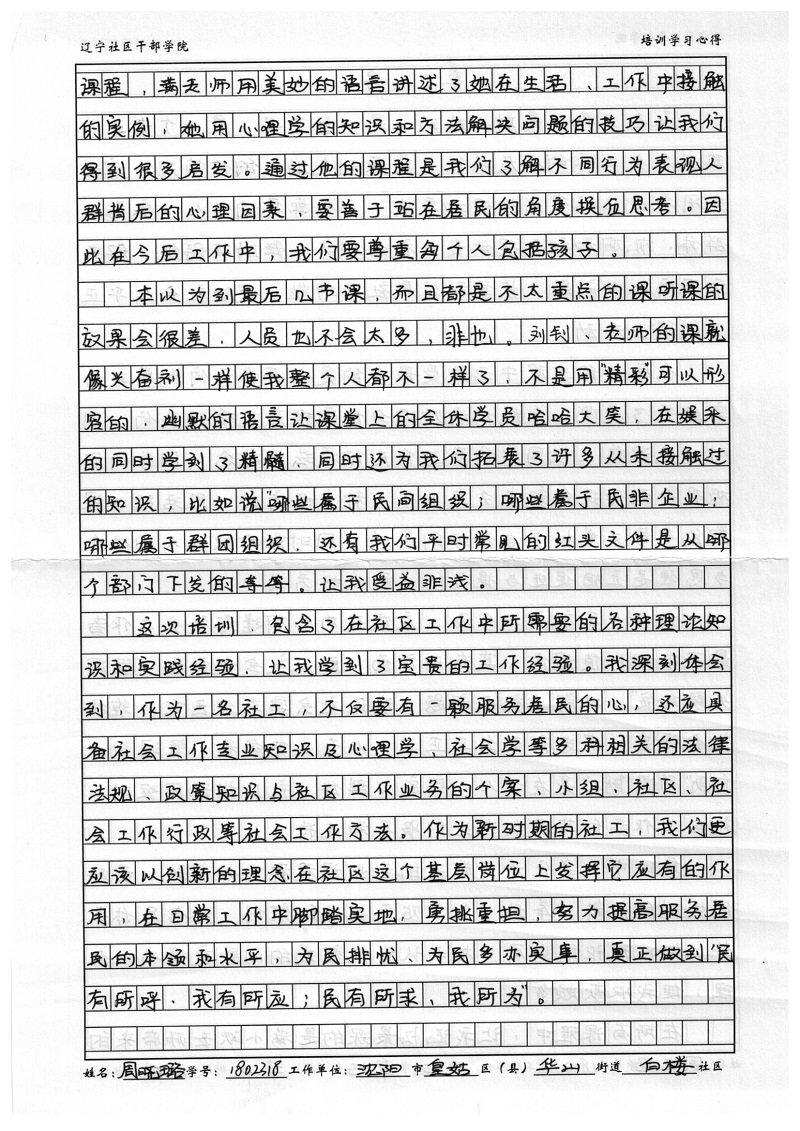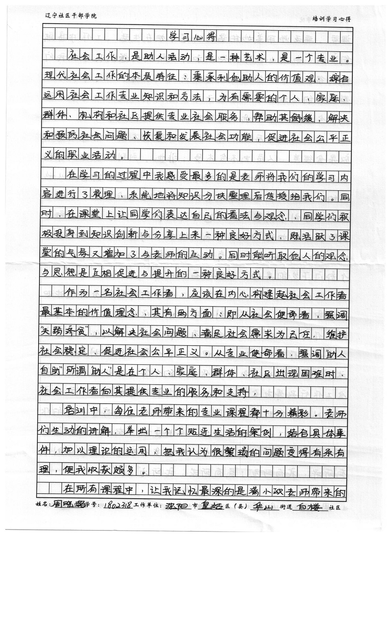 沈阳市皇姑区华山街道白楼社区周晓璐培训心得