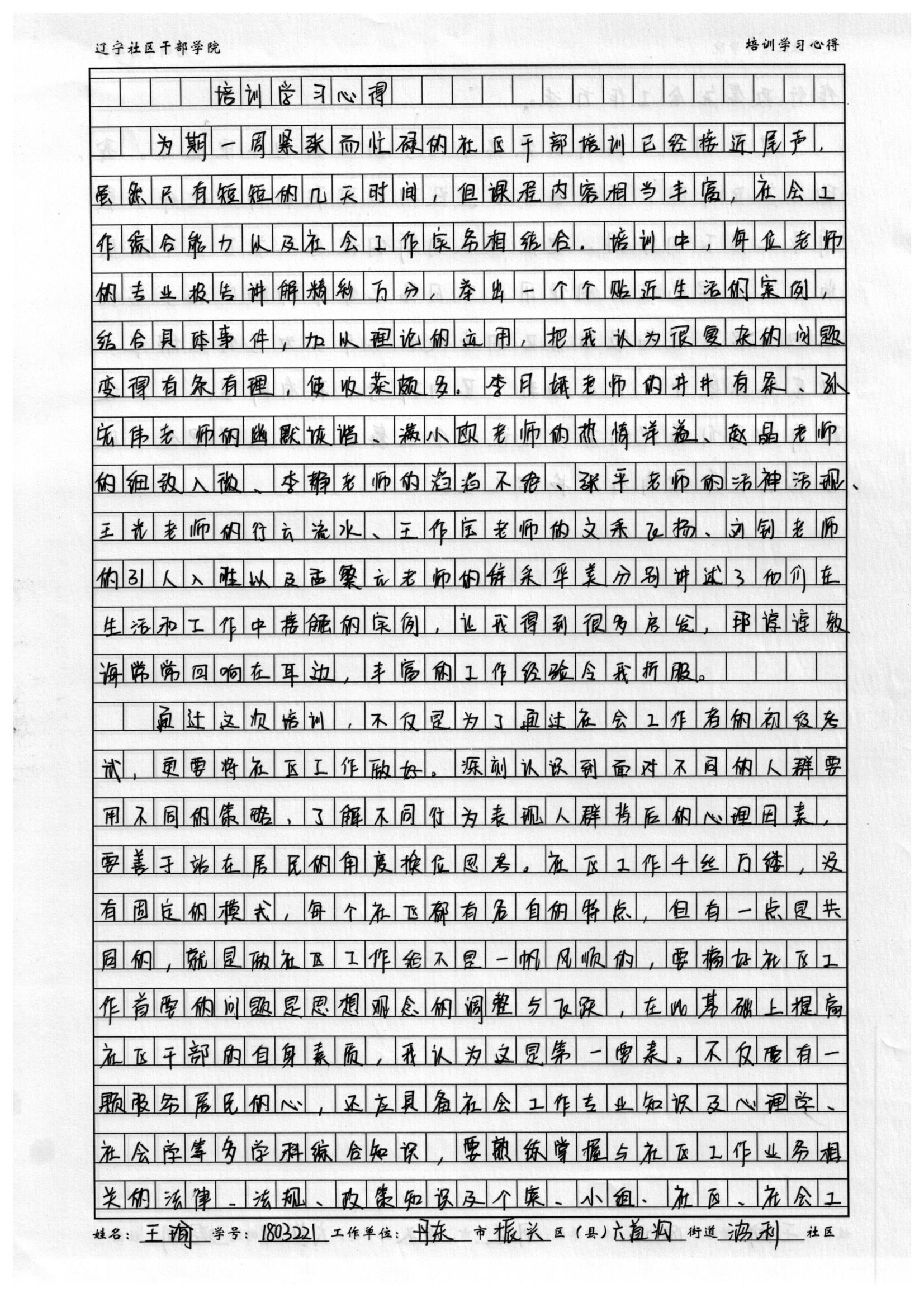 丹东市振兴区六道沟街道红利社区王瑜学习心得